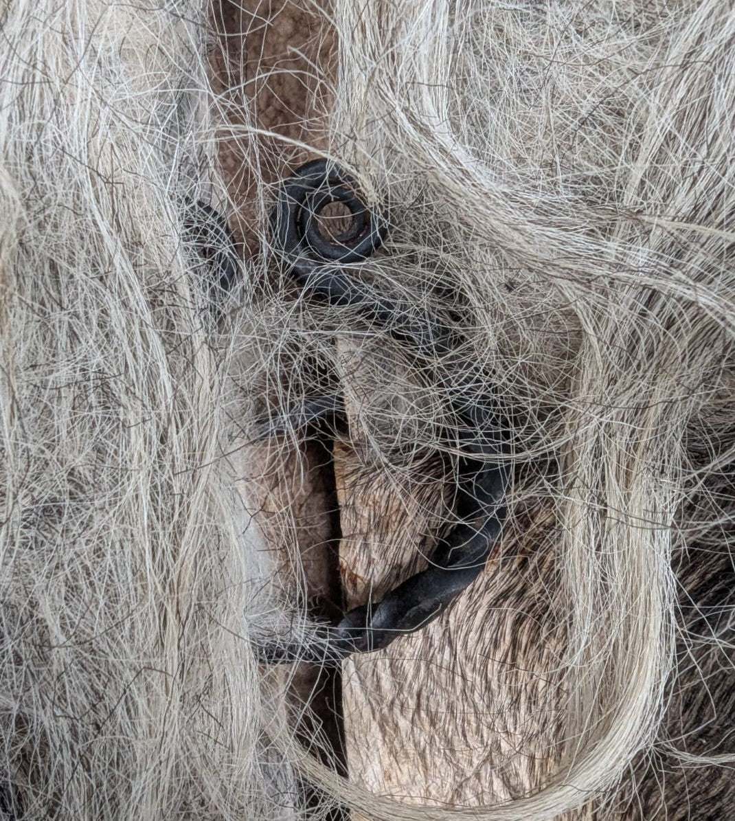 Fellumhang aus Heidschnucke, rustikal und voluminös. XXL-Format mit eindrucksvoller Grau-Melange: von silbrig-hellen Locken bis zu dunkleren, fast schwarzen Partien; naturbelassene, helle Lederkanten sorgen für einen authentischen Look. Ideal für Mittelalter, LARP, Cosplay, Halloween und Endzeit/Apokalypse-Style.