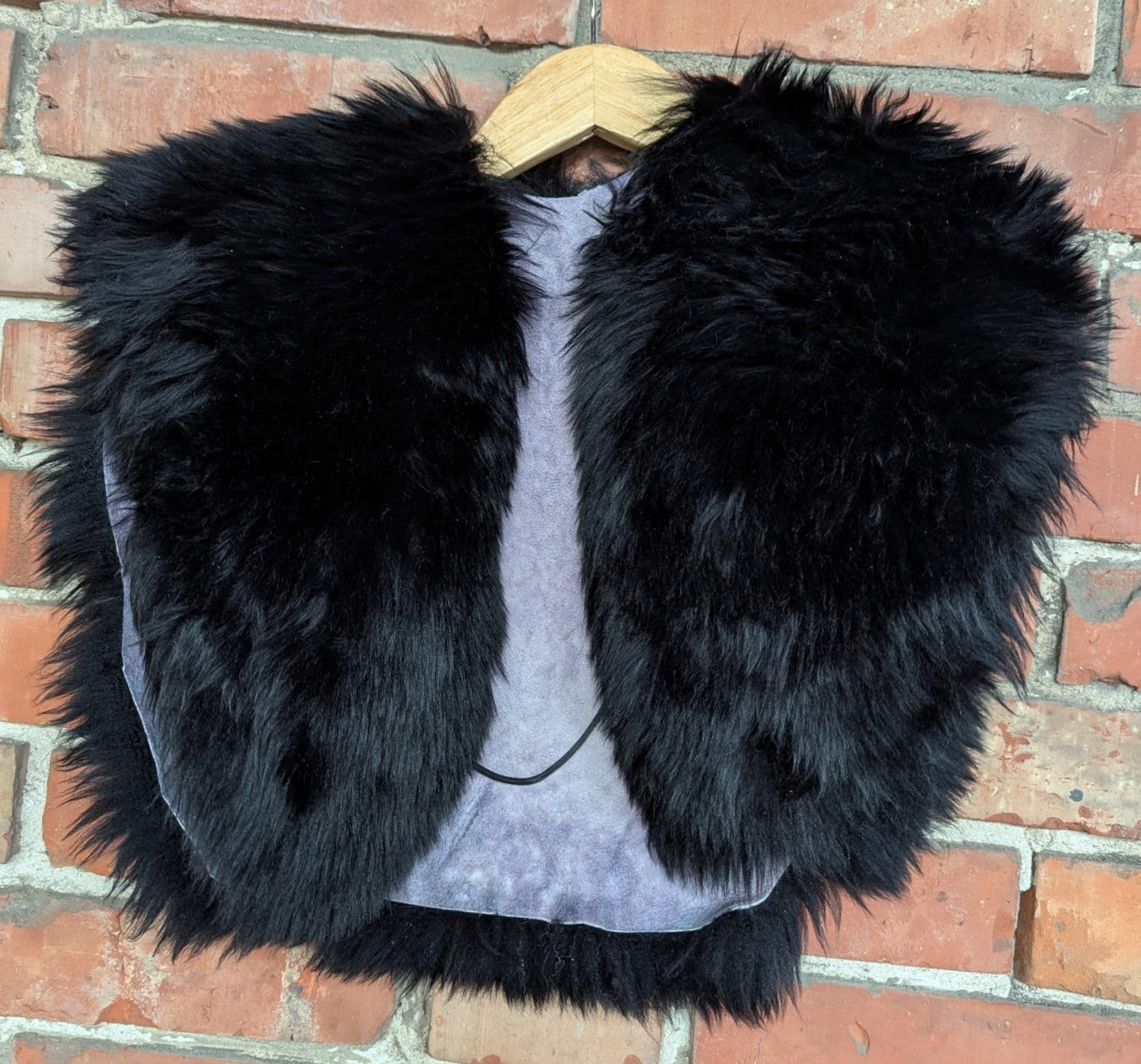 Schulterfell aus Schaffell in Schwarz (kräftige, dichte Optik). Ideal für Mittelalter, LARP, Cosplay und Halloween.