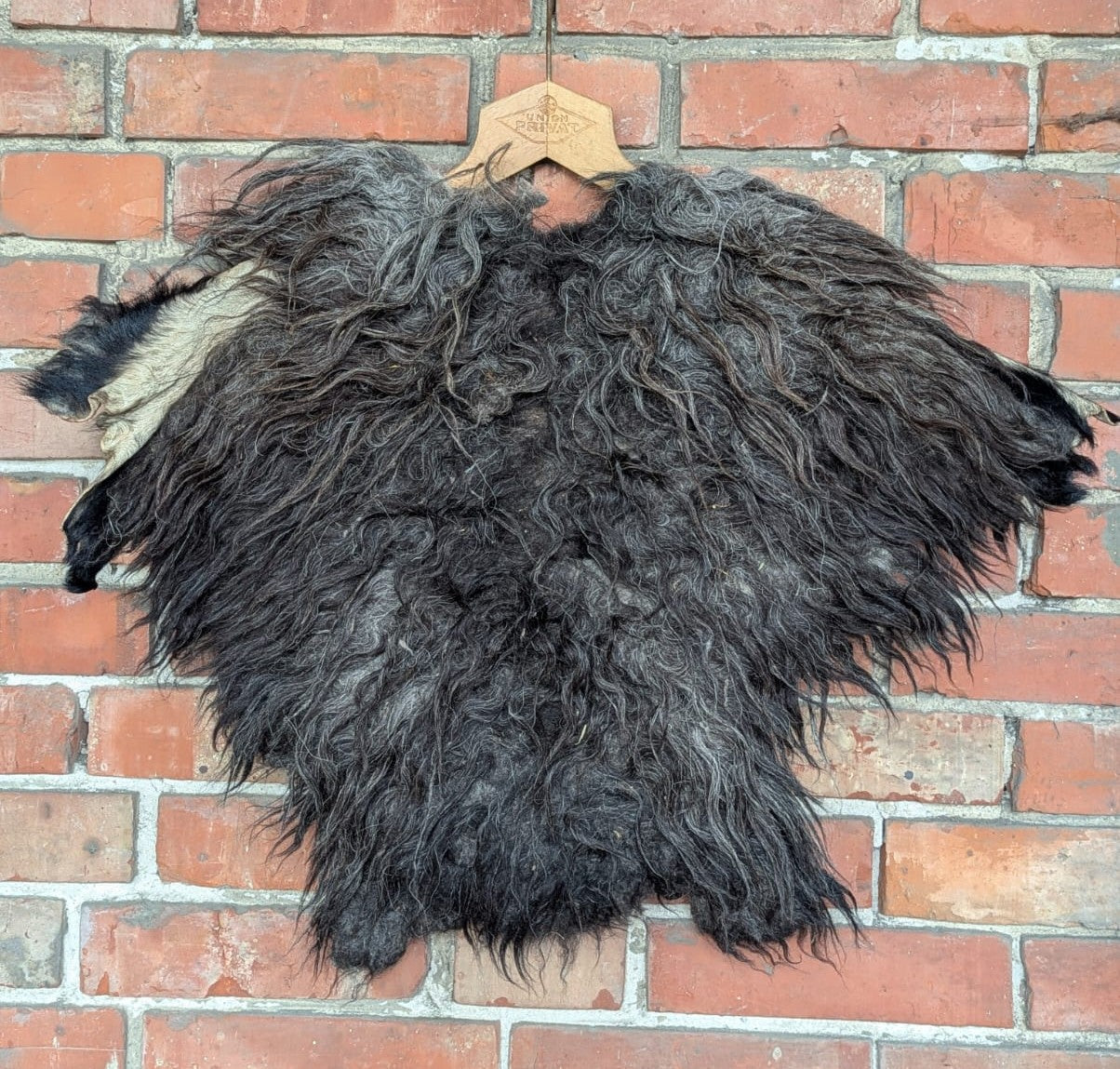 Ob Mittelaltermarkt, Halloween oder Cosplay – mit diesem Schulterfell wirst du zur Legende.! Dieses rustikale Schulterfell aus Heidschnucke zeigt eine kräftige Grau-Schwarz-Melange mit hellen Naturkanten – roh, nordisch und perfekt für Mittelalter, LARP, Cosplay, Halloween und Endzeit/Apokalypse-Style.